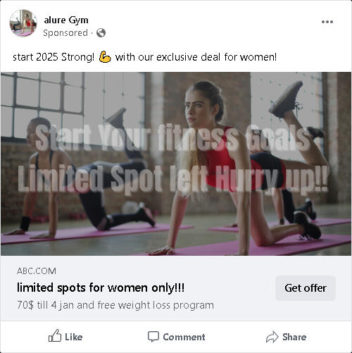 This ad promotes a Gym membership deal, Before the deal, the price was 110$ and after the deal, it became 70$ + a free weight loss program. If we calculate this ad will perform great as mentioned earlier With Proper Insight Driven Targeting and a landing page matching the urgency of this deal. If we calculate the results in numbers it can give us the results of a minimum of 4x to 12x ROAS (return on ad spent) (this campaign ad spent Is 500$) this is not a Guess this is an insight-driven study and calculation of how the ad will perform